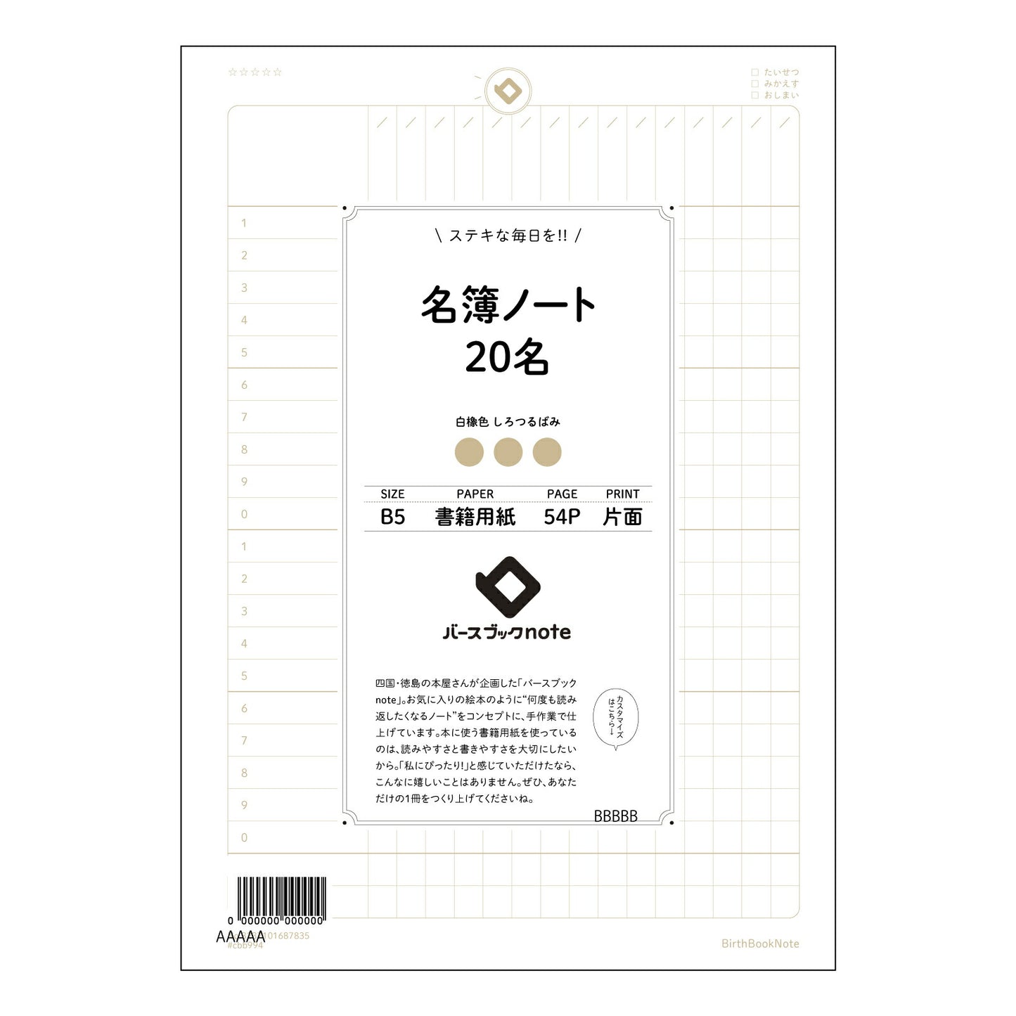 名簿ノート20名 名簿管理ノート -大切な人との繋がりを深める、シンプルで洗練された記録帳- 【 B5 】 ルーズリーフ 26穴【 バースブックノート 】 2025年10月始まり(2026年1月始まり対応) スケジュール帳 手帳 月間マンスリー : クリーム色/日本書籍用紙 【3237101087835】 【 コクヨ 】 キャンパス 2穴 4穴 バインダー 布貼 【 マルマン 】クロッキー スケッチ ダブロック 勉強 大容量バインダーセット【BBN】本革 レザー クラフト 【手帳のタイムキーパー】