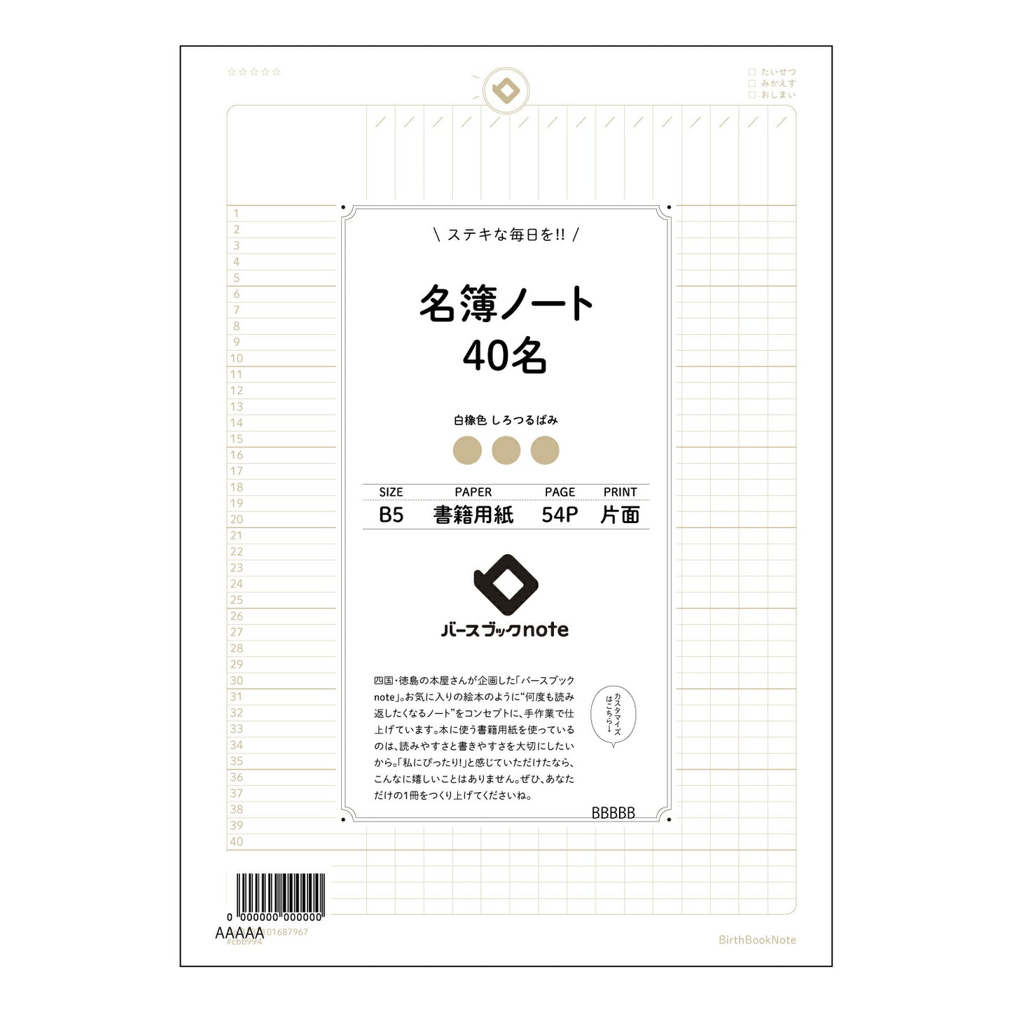 - 商品名で探す:名簿ノート40名