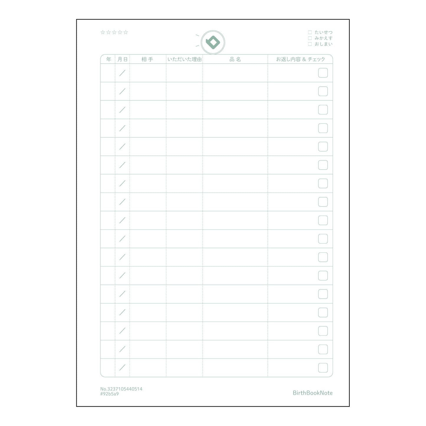 ■バースブックノート